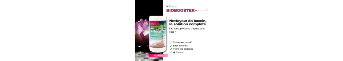 Véritable régénérateur du bassin, Biobooster+ favorise la filtration et l'activité des bactéries détritivores, réduit naturellement vases, filaments et déchets organiques, vivifie visiblement les poissons.