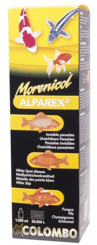 Alparex est actif contre les parasites tels que l’Ichthyobodo (Costia), le Chilodonella, Ichthyophthirius multifiliis (points blancs) et le Trichodina.