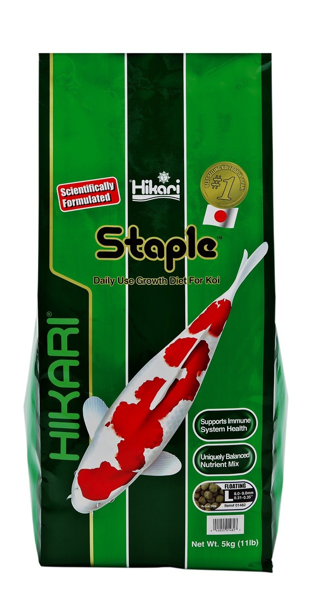 Hikari Staple est un aliment quotidien formulé en laboratoire pour l'alimentation de poissons Koi et d'autres poissons d'étang à des températures d'eau supérieur à 10°C. Les ingrédients équilibrés garantissent une croissance rapide, une bonne forme et une utilisation efficace.