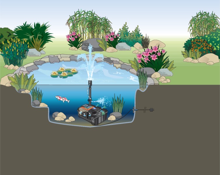 Deux mousses filtrantes différentes ainsi que des bio éléments et de la céramique assurent l'épuration mécanique et biologique. Puissance d'UV pour une eau claire et limpide.