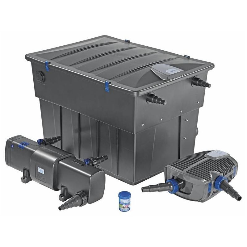 - Le kit complet comprend : un filtre gravitaire BioTec ScreenMatic² 90000 avec filtre à ultraviolets autonettoyant Bitron 110W et une pompe de filtration AquaMax Eco Premium 21000 énergétiquement performante