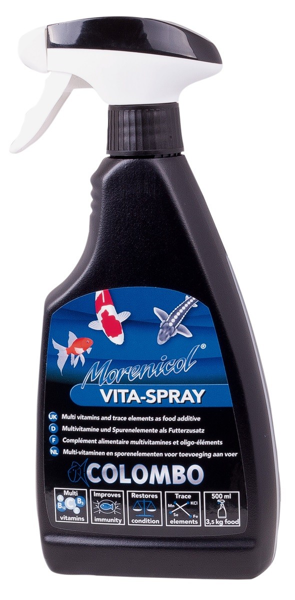 Ajoutez Vita-Spray à la nourriture des poissons lorsqu'ils ont besoins de reprendre des forces, comme après l'hiver ou après un traitement médicamenteux.